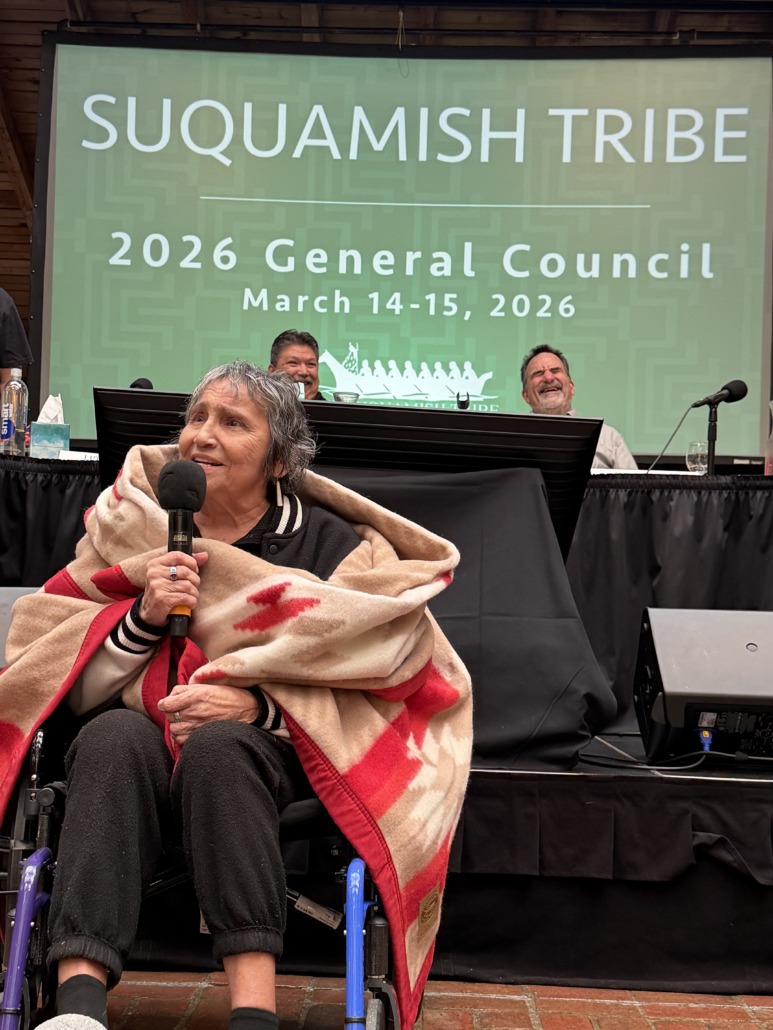 During the General Council gathering at Kiana Lodge, the Suquamish Tribe honored former Tribal Council Chair Georgia George in a ceremony recognizing her decades of leadership and service.
